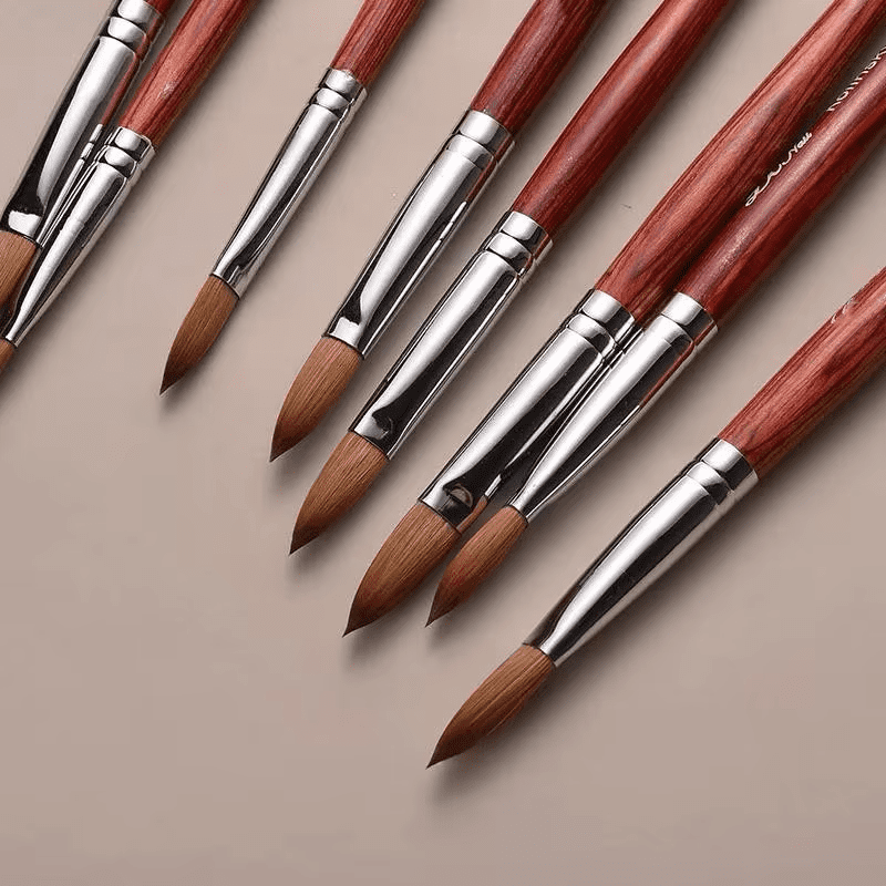 Il s'agit d'un pinceau en poils de martre que nous avons produit. Les pinceaux en poils de martre offrent une capacité de rétention de peinture supérieure et une pointe plus fine et plus réactive que les pinceaux en nylon, permettant des traits plus fluides et un meilleur contrôle. Ils offrent également une meilleure élasticité et un ressort naturel, ce qui les rend idéaux pour un travail détaillé et expressif. Nous, Ningbo Phyno, en tant que fournisseur de fabrication de pinceaux, pouvons personnaliser les pinceaux en poils de martre selon vos besoins. Dans l'attente de votre demande.