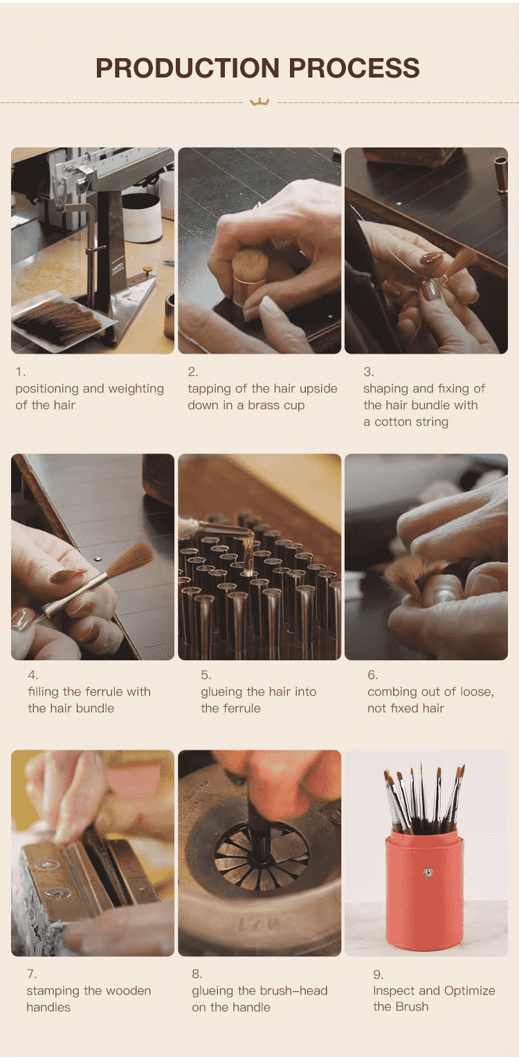 Ningbo Phyno est l'un des plus grands fabricants de pinceaux en martre en Chine. Nous sommes flexibles en termes de qualité et de coût, nous pouvons donc coopérer avec de nombreux clients mondiaux partout dans le monde, à savoir : client de marque, super centre, vendeur Amazon et studio d'art. Bienvenue, envoyez-nous une demande pour toute exigence OEM, nous pouvons personnaliser : le matériau de la brosse, la taille, le logo et l'emballage pour vous.